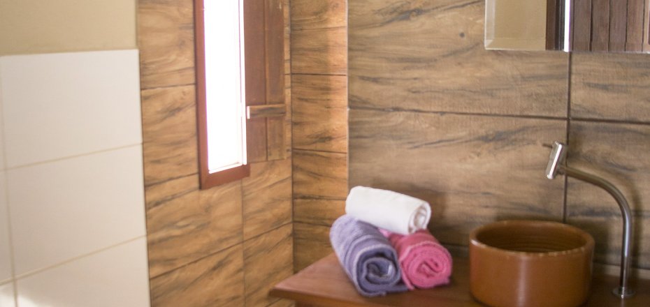 - Ar condicionado, ventilador de teto e frigobar nos chalés.